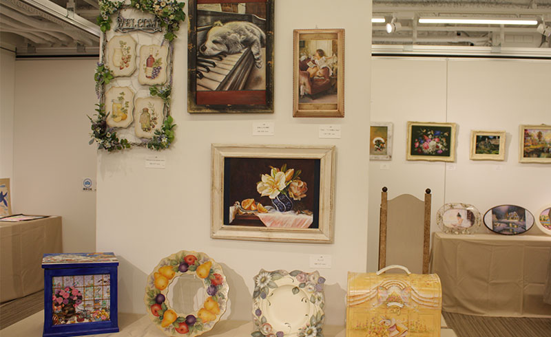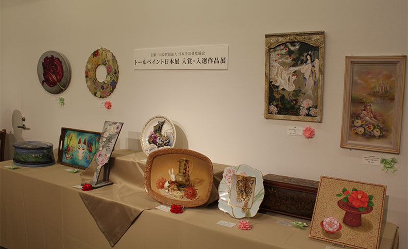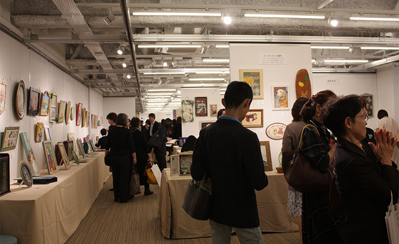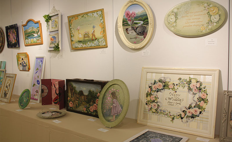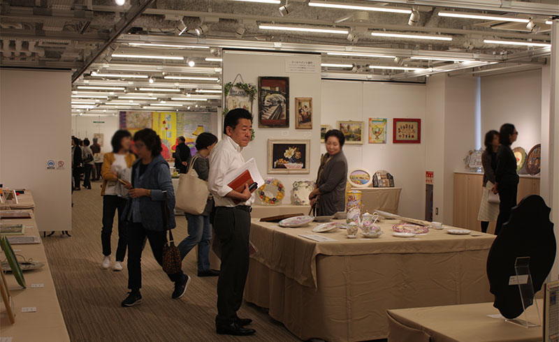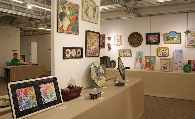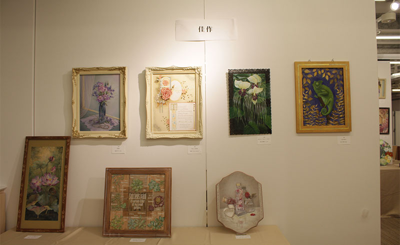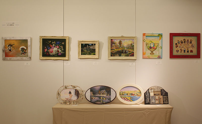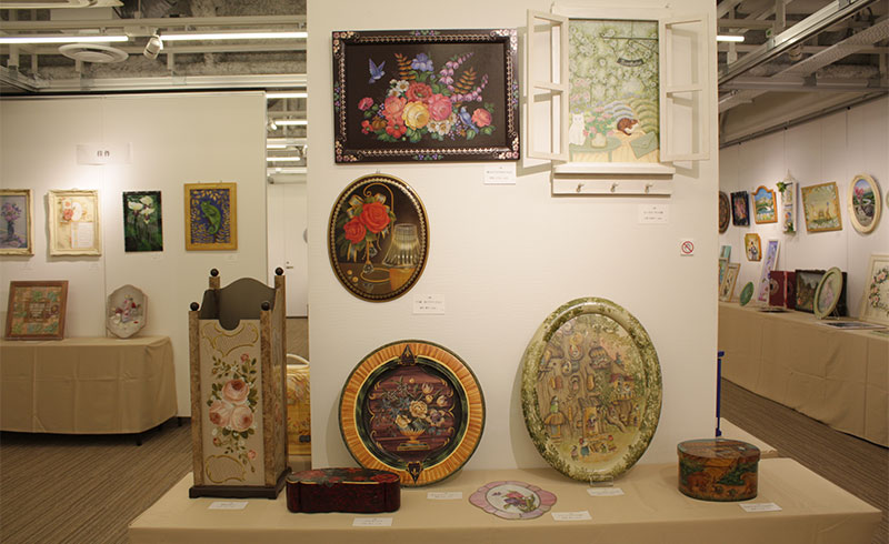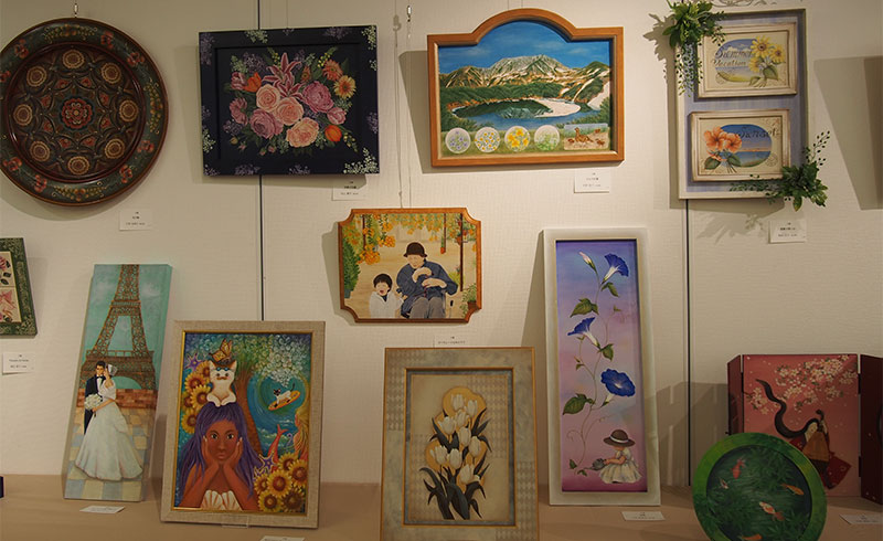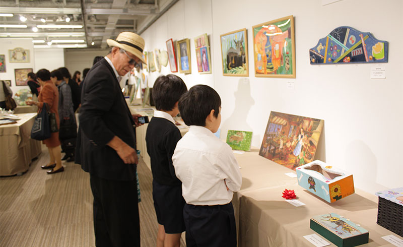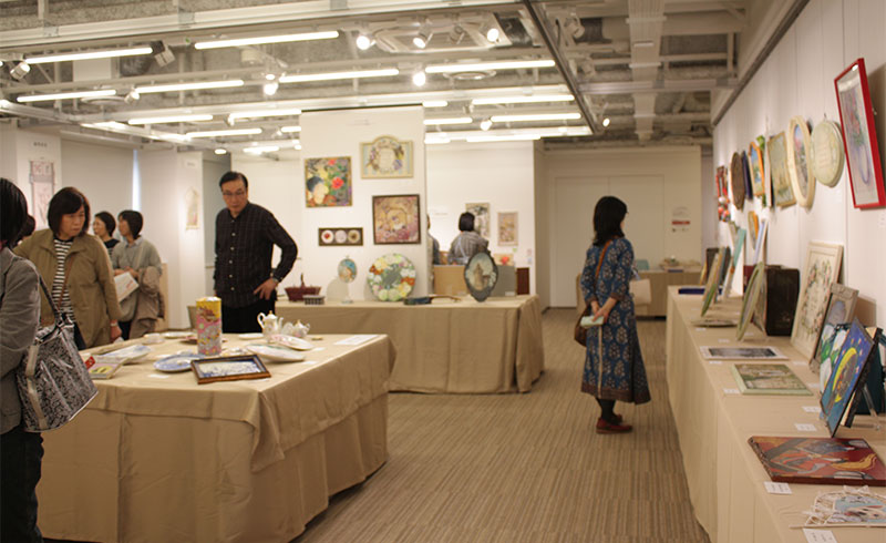 「Happiness is…(しあわせって…)」会員と生徒の作品228点を展示。